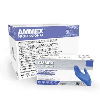 AMMEX Professional Exam Blue Nitrile Gloves are the first line of defense for healthcare pros. These durable gloves are tested for chemotherapy use and resist permeation against fentanyl for up to 240 min under the standard ASTM D6978. They deliver consistent, dependable barrier protection against bodily fluids, bloodborne pathogens, and contaminants.