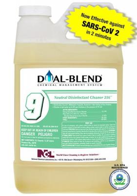 Per the December 2, 2021 revision of EPA List N, DUAL-BLEND® #9 Neutral Disinfectant Cleaner Deodorizer has now demonstrated effectiveness against SARS-CoV-2, which causes COVID-19 on hard, non-porous surfaces in just 2 minutes