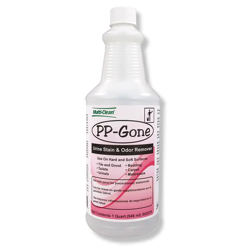 PP-Gone is a Peroxide Powered Cleaner that destroys urine odors and stains on hard and soft surfaces. PP-Gone is not just for hard surfaces, the dye free formula is safe on soft surfaces including carpet, bedding, mattresses, upholstery and clothing. It makes a great laundry pre-spot for urine and other stains. PP-Gone works effectively on human urine and animal urine odors and stains.