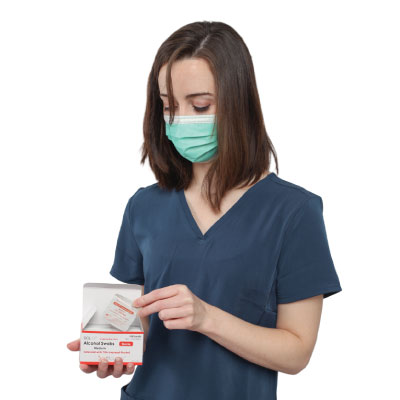 70% isopropyl alcohol to clean and prepare the skin. Individually wrapped in 4-layer wrappers for an air-tight seal that prevents leakage and drying.